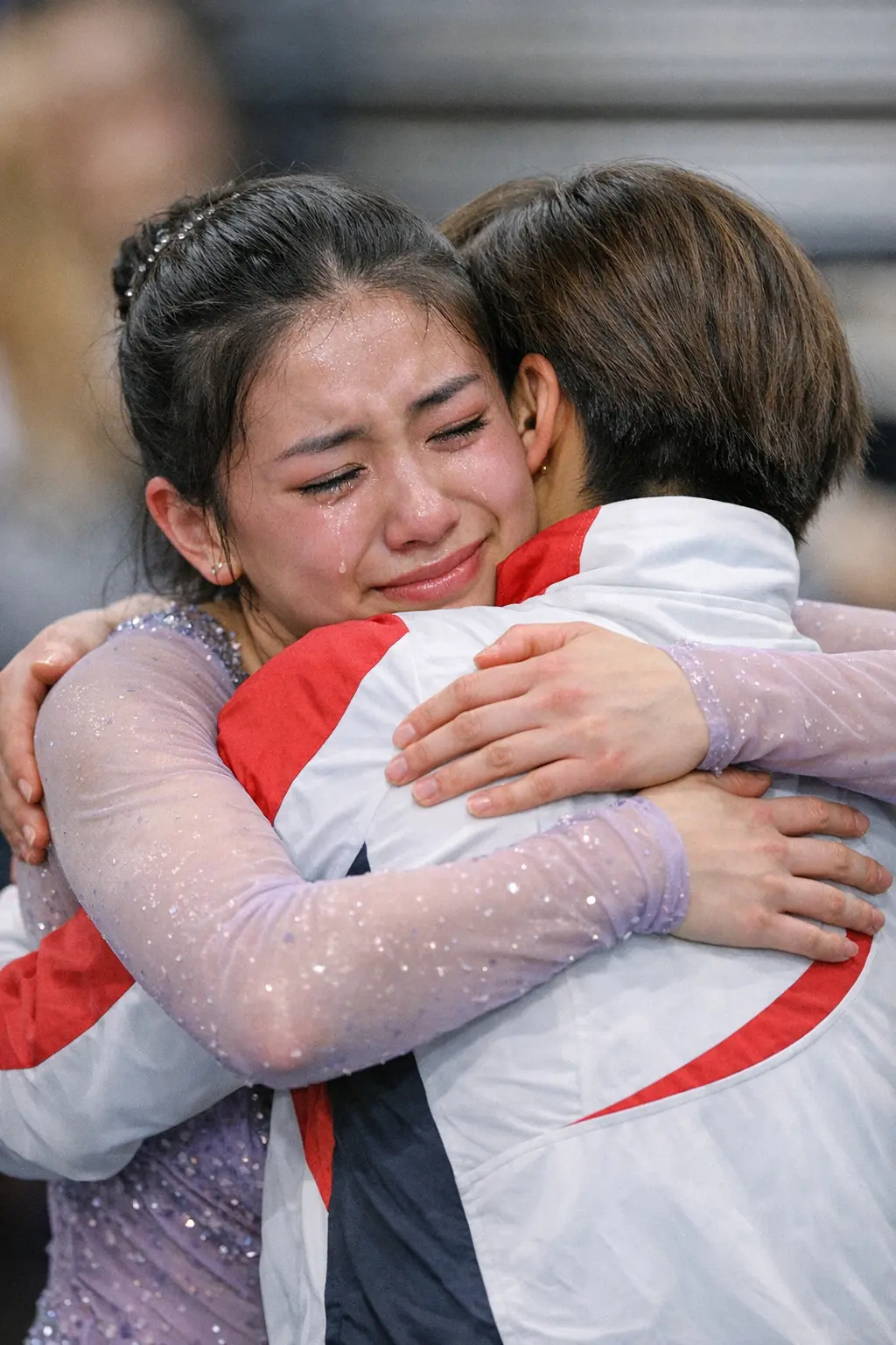 Overcome with emotion, Liu immediately stepped forward and embraced Sakamoto tightly. The hug lasted several seconds, long enough for tears to roll down Liu’s face as she held onto the Japanese champion without letting go.